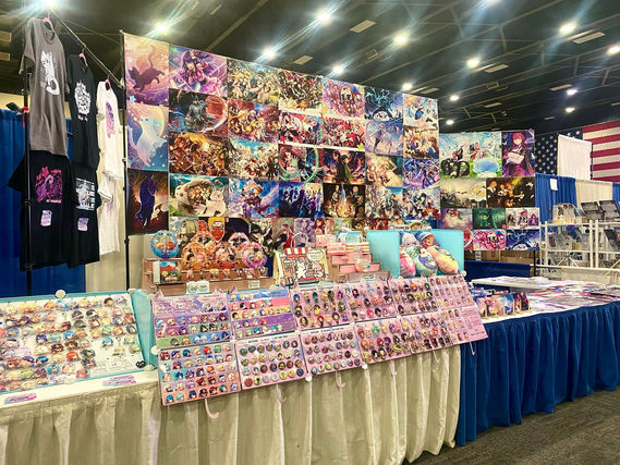 My goal is not only to bring beautiful and unique products that attendees love to take home, but to provide a fun gallery experience. My work is jam-packed with loving detail that can be appreciated for years and years. I take my time to craft illustrations that show care and attention that attendees can relate to and appreciate. As a fan, I believe that making attendees feel accepted and seen is a key part of the anime con experience!